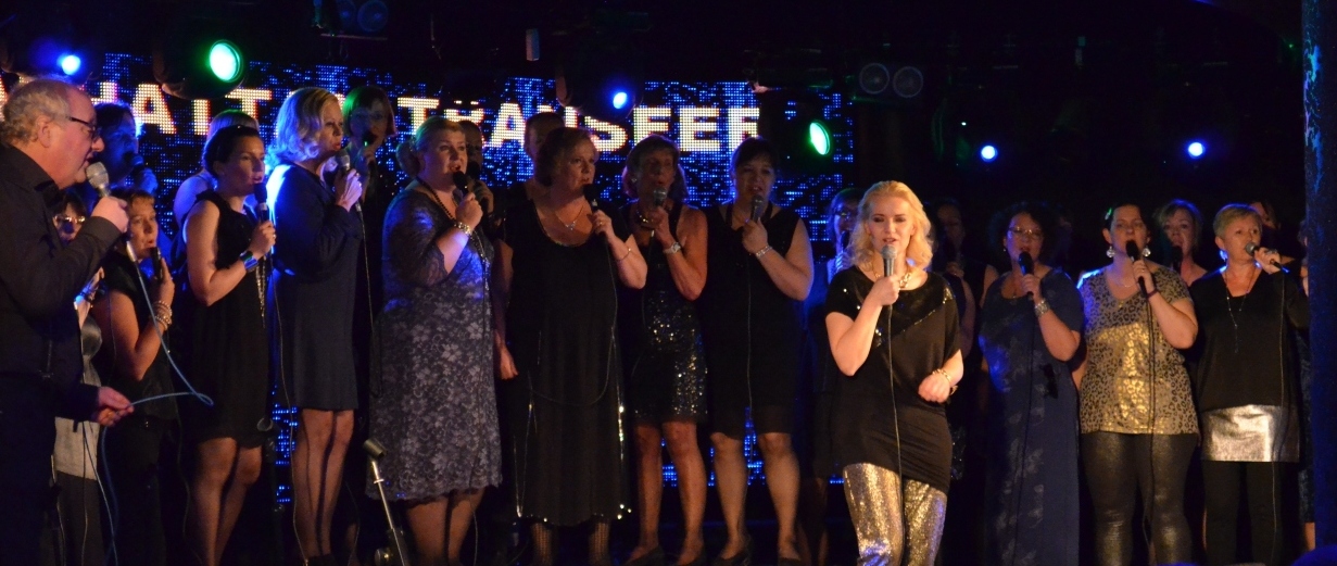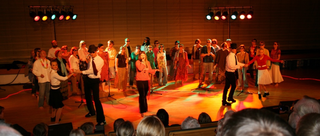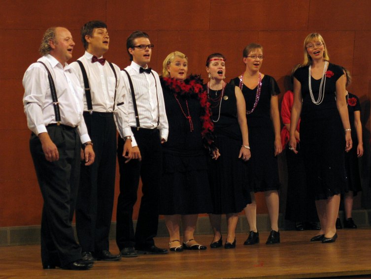 foto: Jouni LappiKören ackompanjerades av 'The 105th Street Band' under ledning av Thomas 'Skitta' Lindroos och förutom nuvarande dirigenten Pia Kulla deltog även de tidigare dirigenterna Hanna Kronqvist, Martin Segerstråle och Sam Fröjdö. Medverkade gjorde också flöjtisten Jennie Högberg, pianisten Tatu Erkkilä, Kim Engblom vid mixerbordet och Nilla Hansson som konferencier.